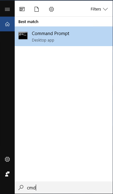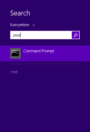Open the command prompt, by hitting the Windows key and type “cmd”. Right click on the Command Prompt icon and choose “Run as administrator”.