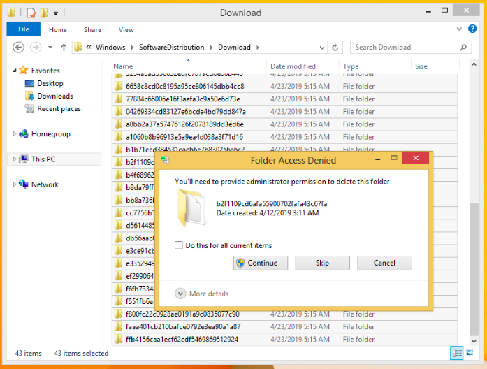 First, open to your Windows installation folder and navigate to the following path: “C:\Windows\SoftwareDistribution\Download” (depending on where you installed your Windows, you may need to adjust the drive letter) and delete all the files there.