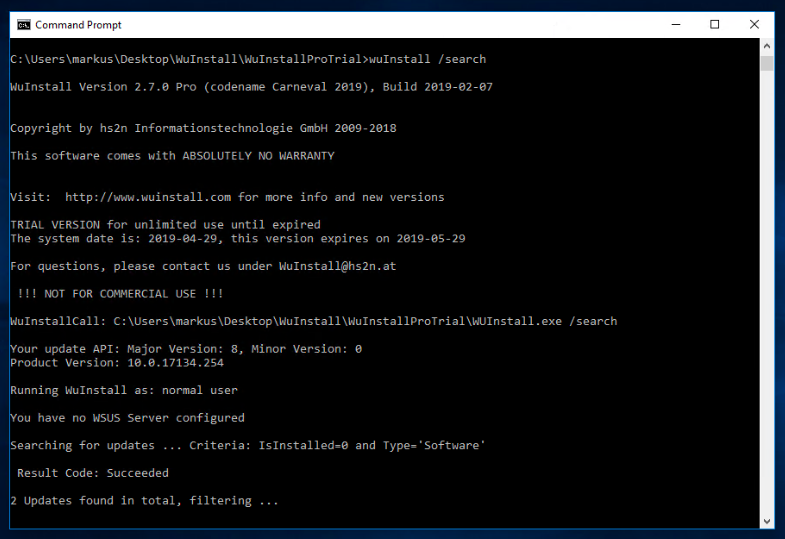 WuInstall is a Windows command line tool that enables IT Administrators to script Windows updates. It makes the entire updating process more controlled and user-friendly by enabling admins to enforce the query, download, and installation of Windows Updates at times when it makes sense.